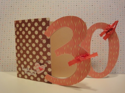 My cousin asked me to help make a card for her friend’s 30th birthday…and this is what I came up with. Inside reads: “…is the new 20”. Here I used my Cricut Expression and Design Studio to create the template of the card. I used the Plantin’ Schoolbook cartridge for this card. I then cut out a 3 and a 0 on patterned paper and adhered it with some foam dimensionals. I embossed “birthday wishes” in the front and added a heart sticker for the extra “girly” touch.