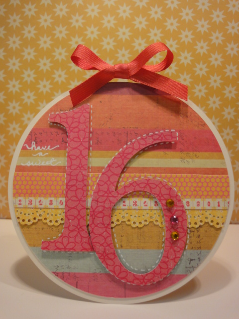 This by far is my favorite card! It was also my first circular card! It took a lot longer than I anticipated, but it was well worth it! My friend’s sister was turning 16 and she asked me to help make her a card. I originally wanted to make the card exactly like the “30” card above…but of course it’ll read 1-6 instead. But I didn’t want to run it through my Cricut Expression…my laziness definitely kicked in. I decided I wanted to use my new Crate Paper Restoration 6×6 paper pad…so I came up with this design. I also used Sassafras’ new Count Me In Wee  Bundle Paper Pad. I’ll probably be making many circular cards during the holiday season since it resembles an ornament =]
