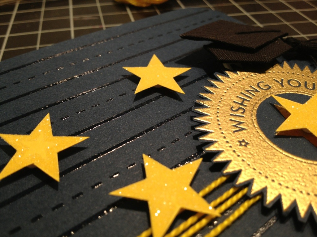 The stars were embossed with Stampin Up!’s Heat and Stick Powder and layered with Martha Stewart’s Fine Glitter in Clear.