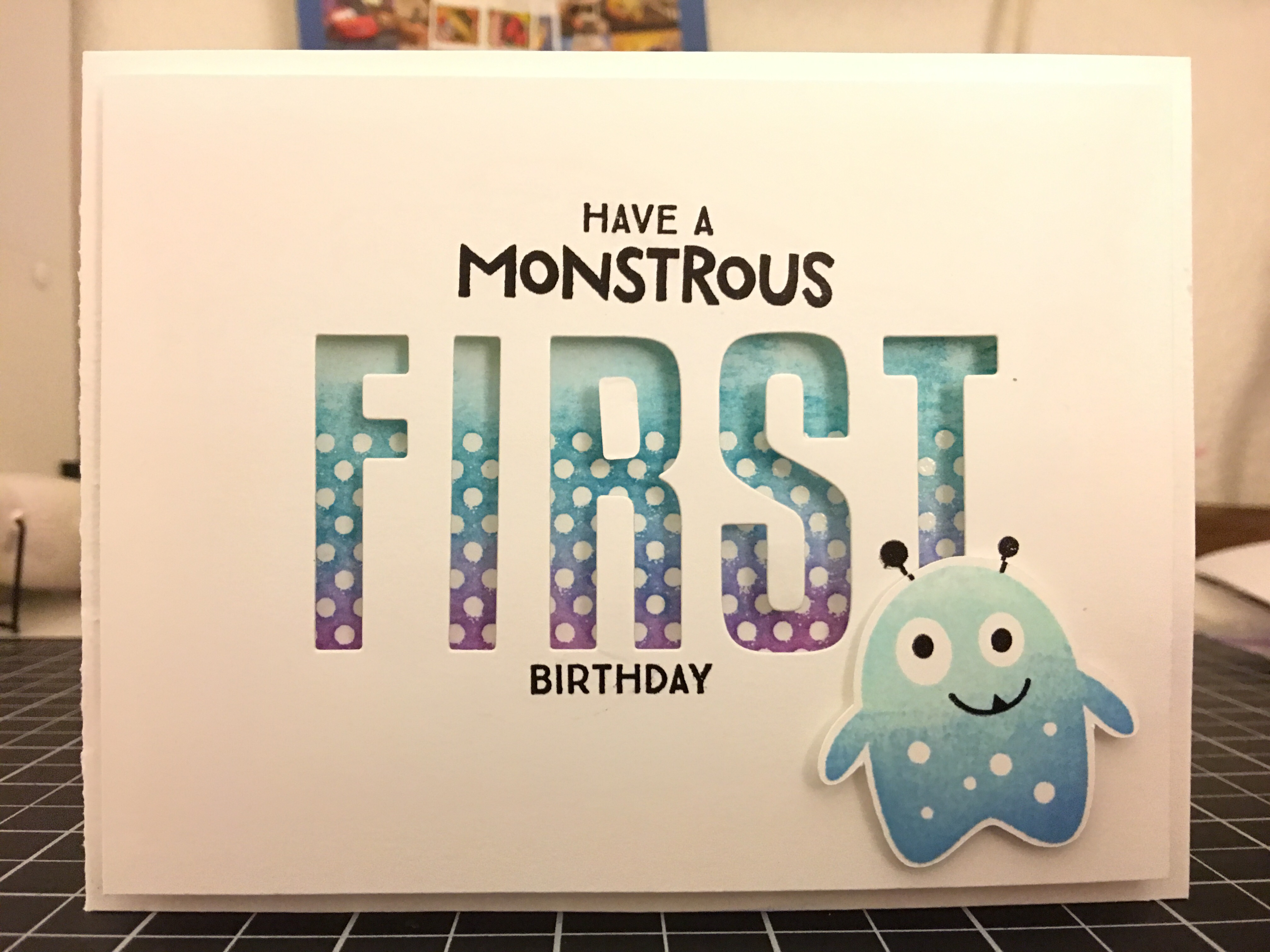 The first card I’m submitting is “Have a Monstrous FIRST Birthday.”