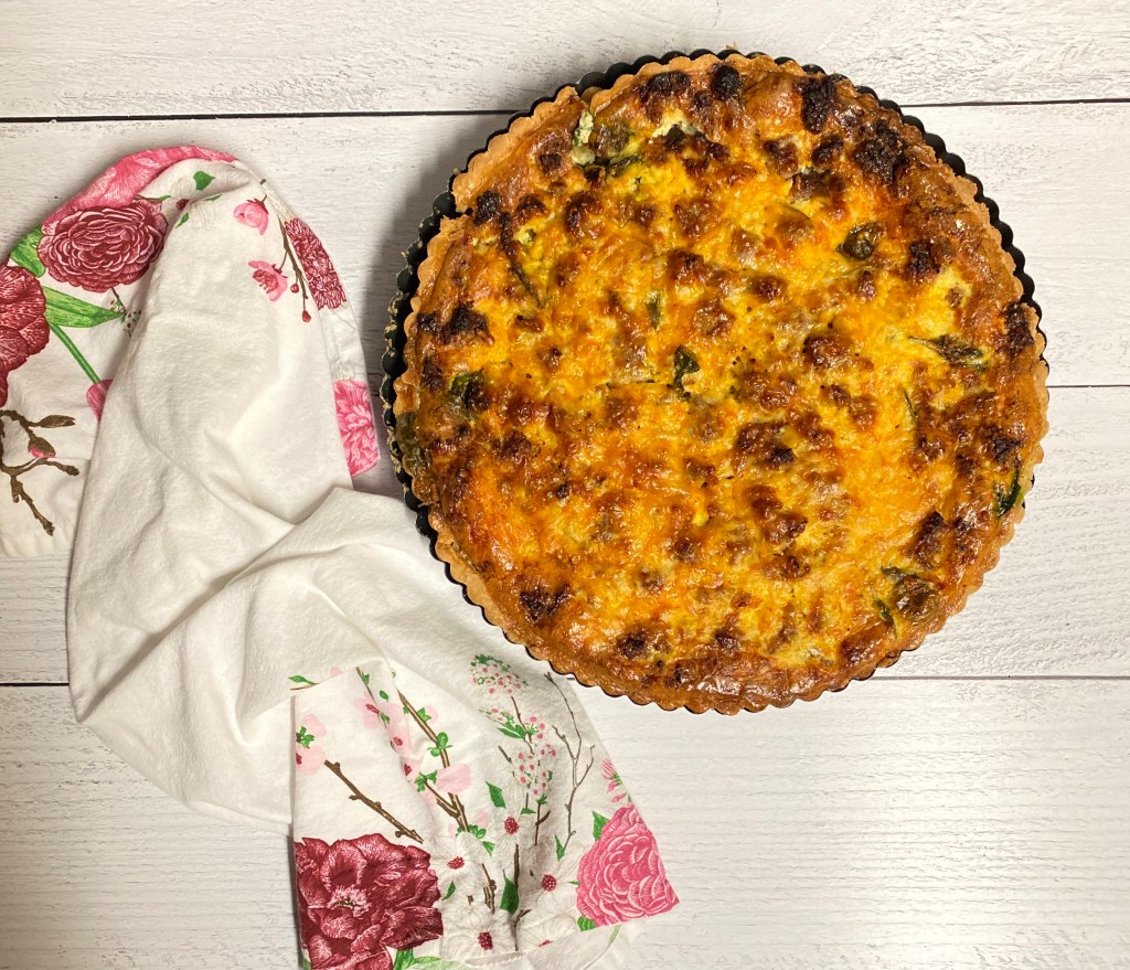 This recipe is my second attempt at a quiche and this time I pulled what I liked from the Jimmy Dean Sausage Quiche and the Pioneer Woman Cowboy Quiche recipes. and sort of made it my own.