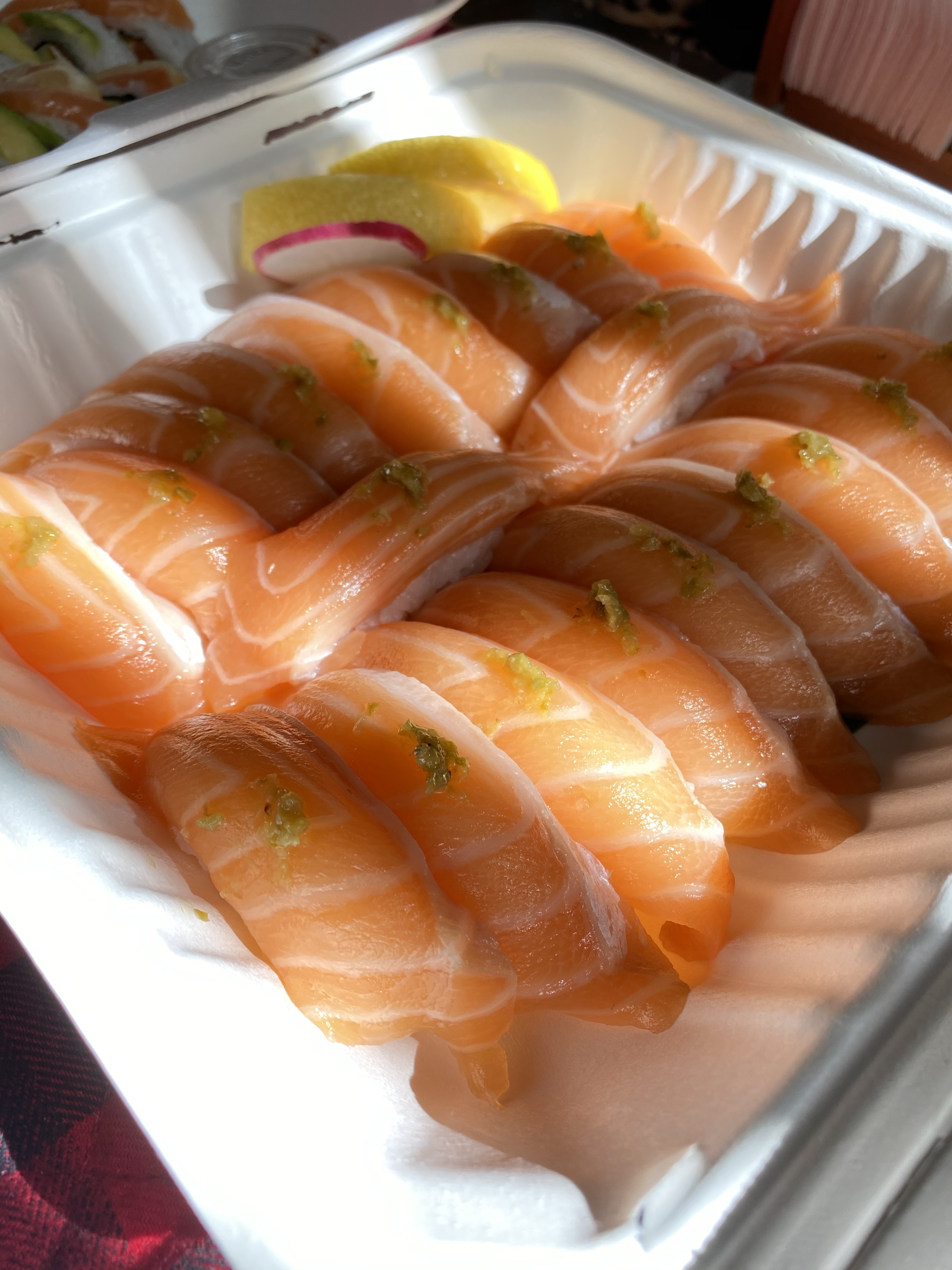 We’ve tried many different things off the menu, but our favorites are: the Lemon Roll, multiple orders of salmon belly sushi (usually anywhere from 20-24 pieces) and yellowtail belly (usually 4-8 pieces). Yes, that was all for just two people. The salmon belly and yellowtail belly is seriously (and literally) melt-in-your-mouth good.