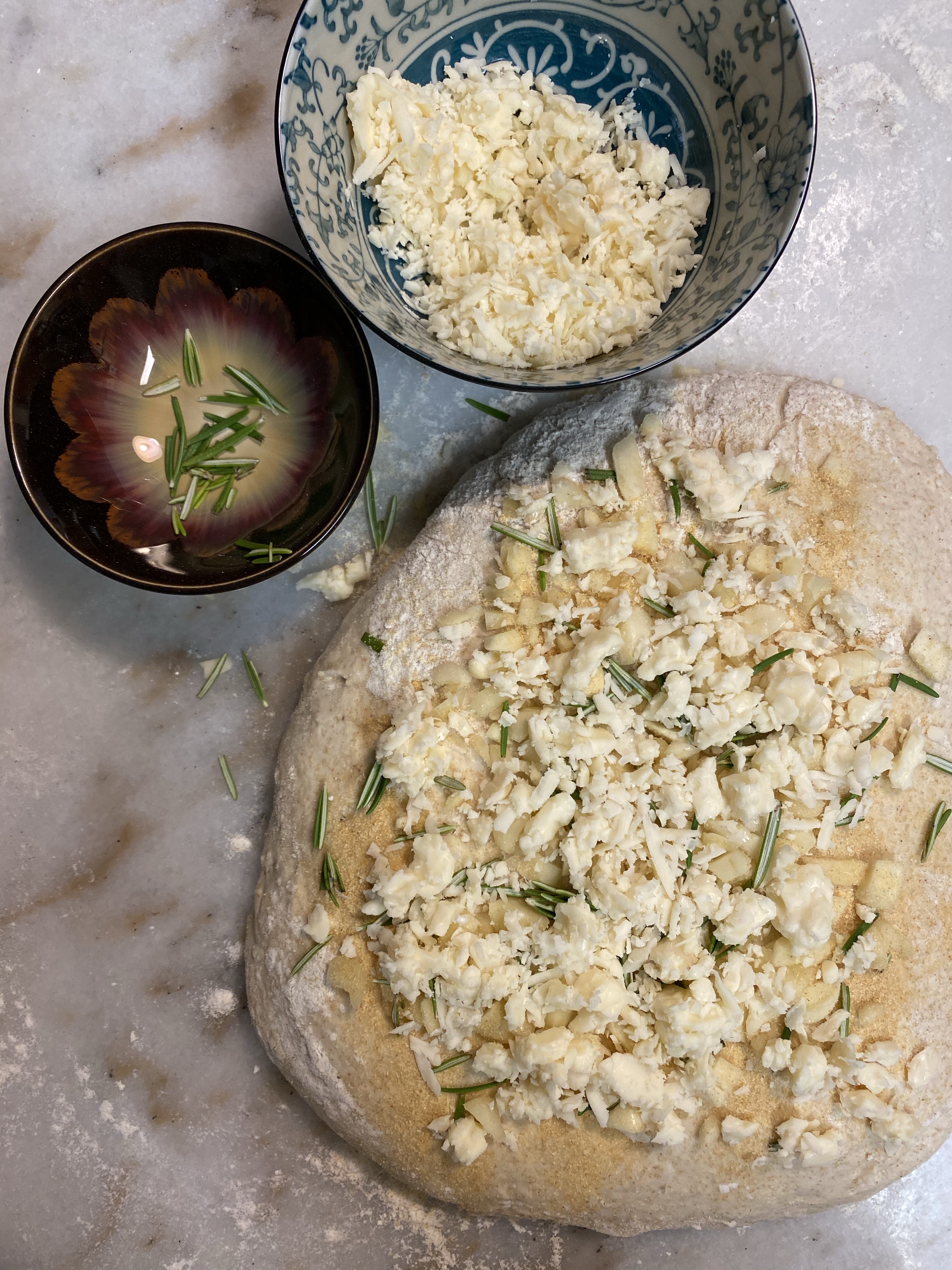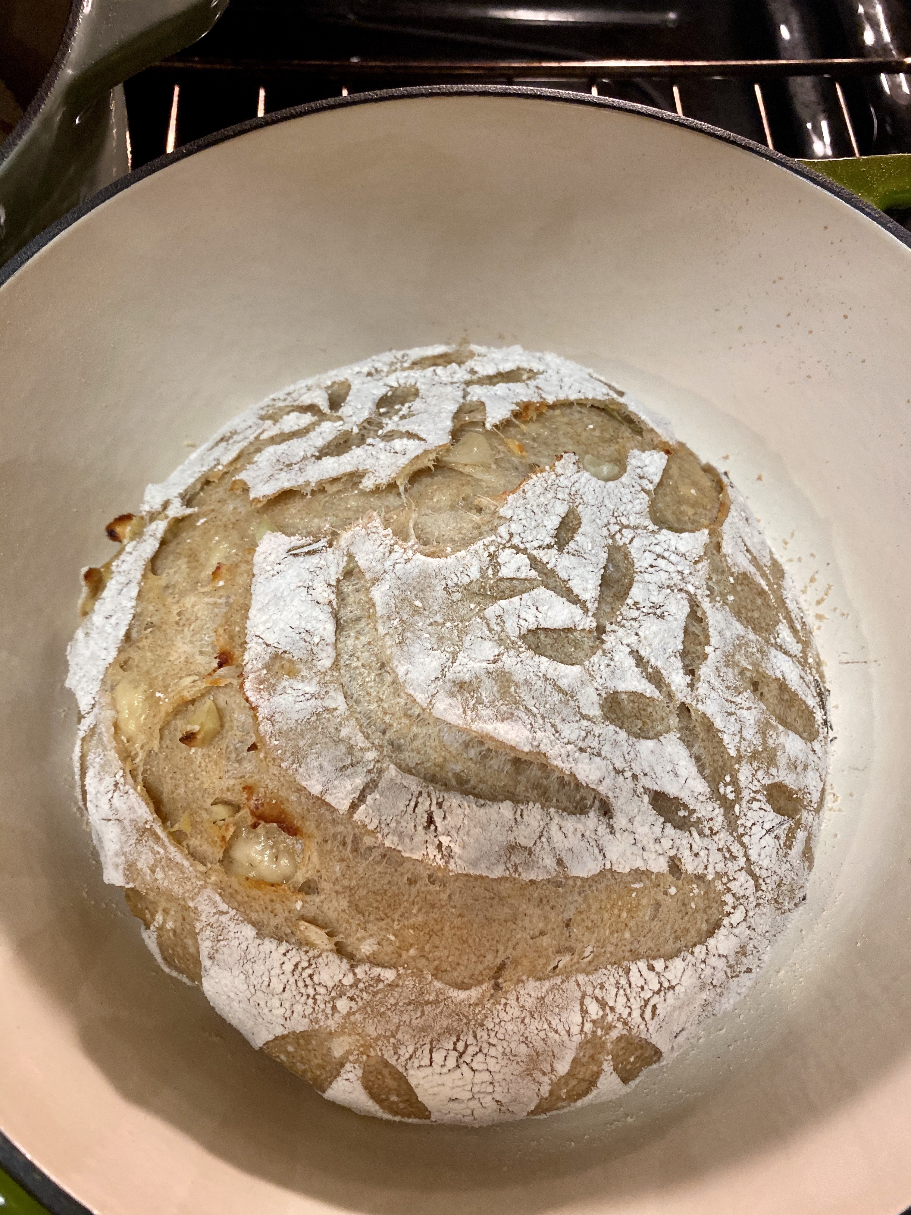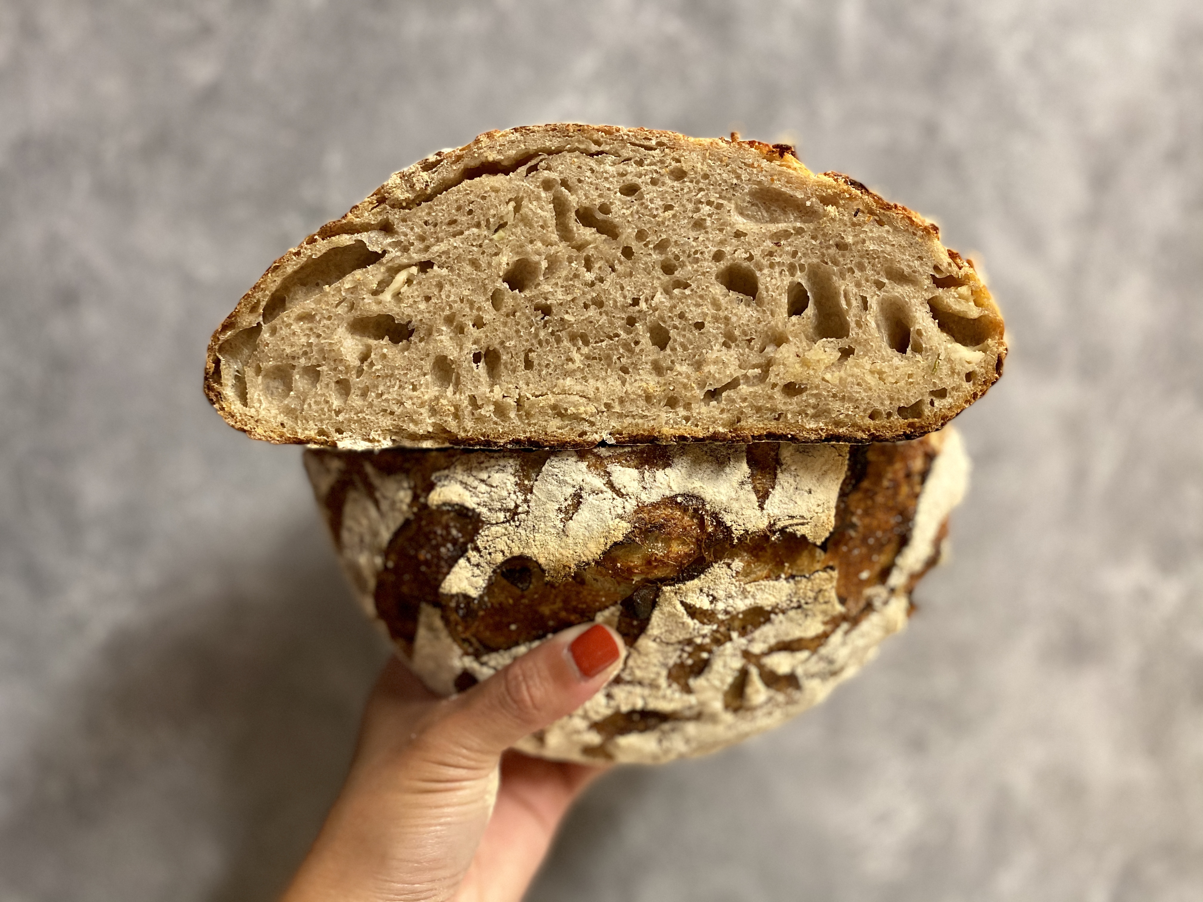 I took a lot of pride in this first bake as well as all the subsequent bakes. I just finished my fourth bake last weekend and this time I had the courage to test out some additional ingredients—I made a Rosemary Garlic Unexpected Cheddar Sourdough. Let me tell you, if you are a garlic lover, it was amazing! The Unexpected Cheddar is from Trader Joe’s by the way. I think I will definitely switch up the cheese next time.