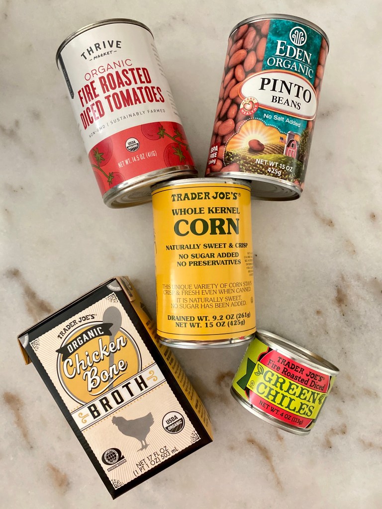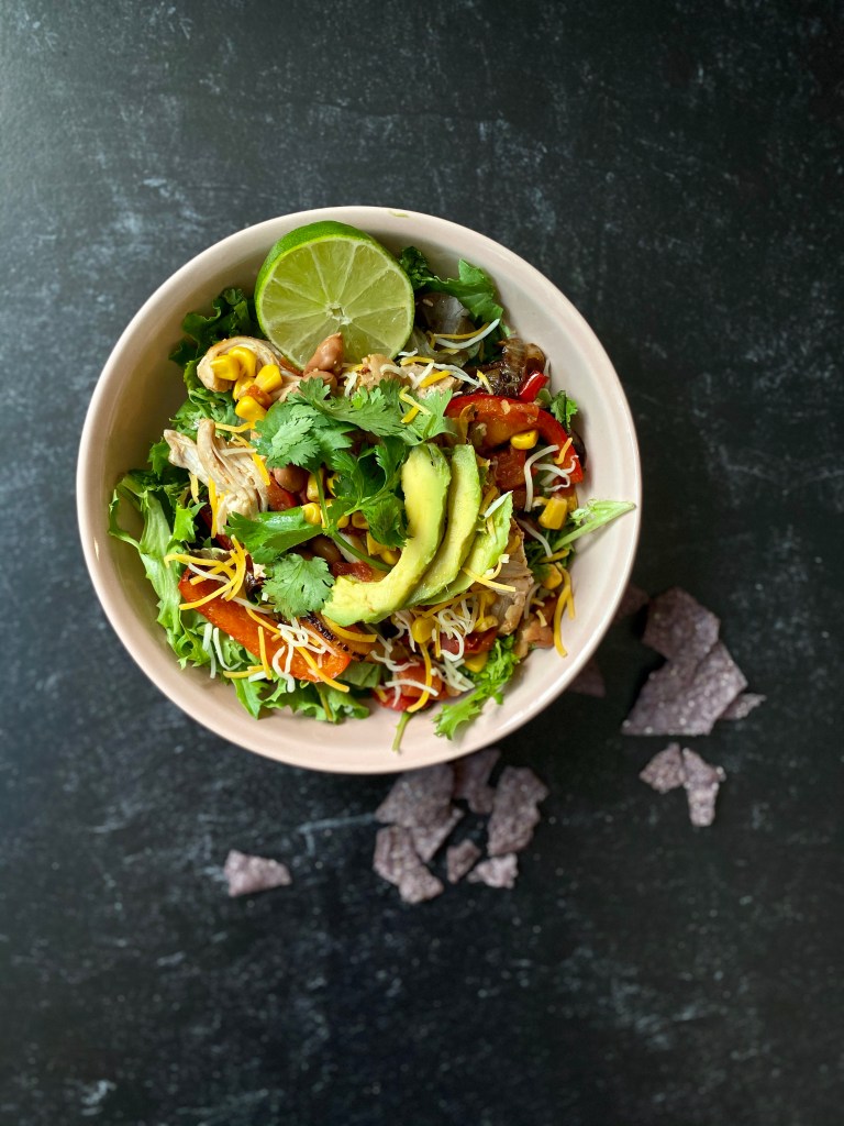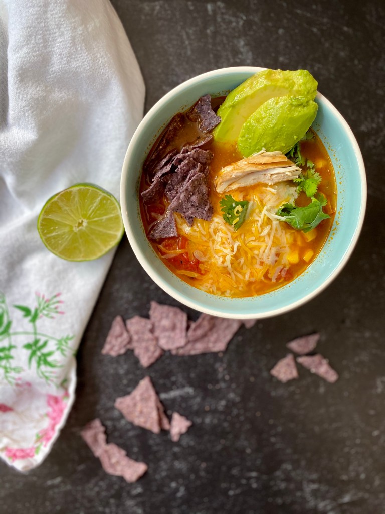 Today’s recipe can whip up two different dishes: chicken tortilla soup and/or chicken bowls. For chicken bowls, simply discard the liquid.