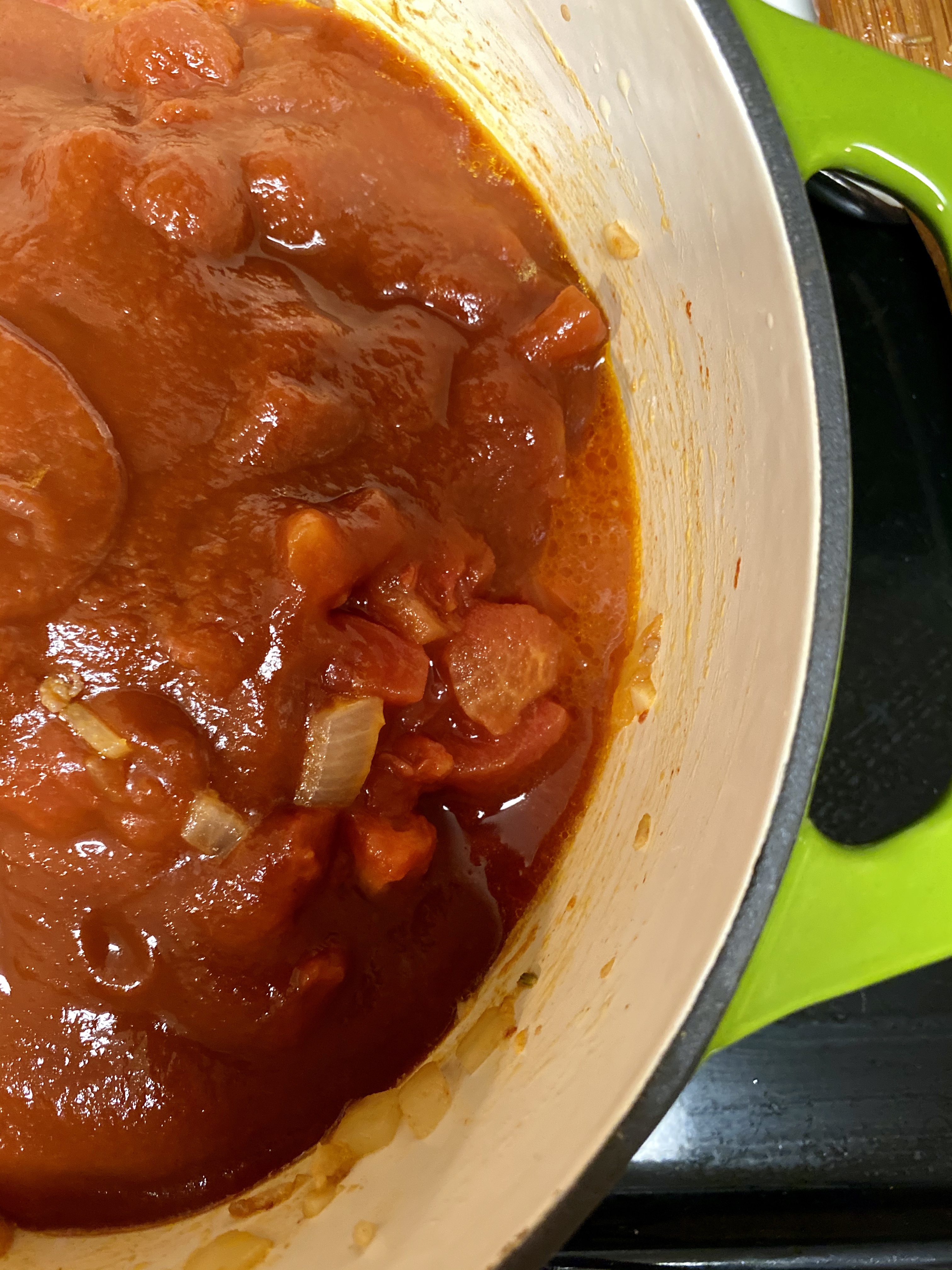 - 1-28oz can of diced tomatoes, can sub for crushed tomatoes